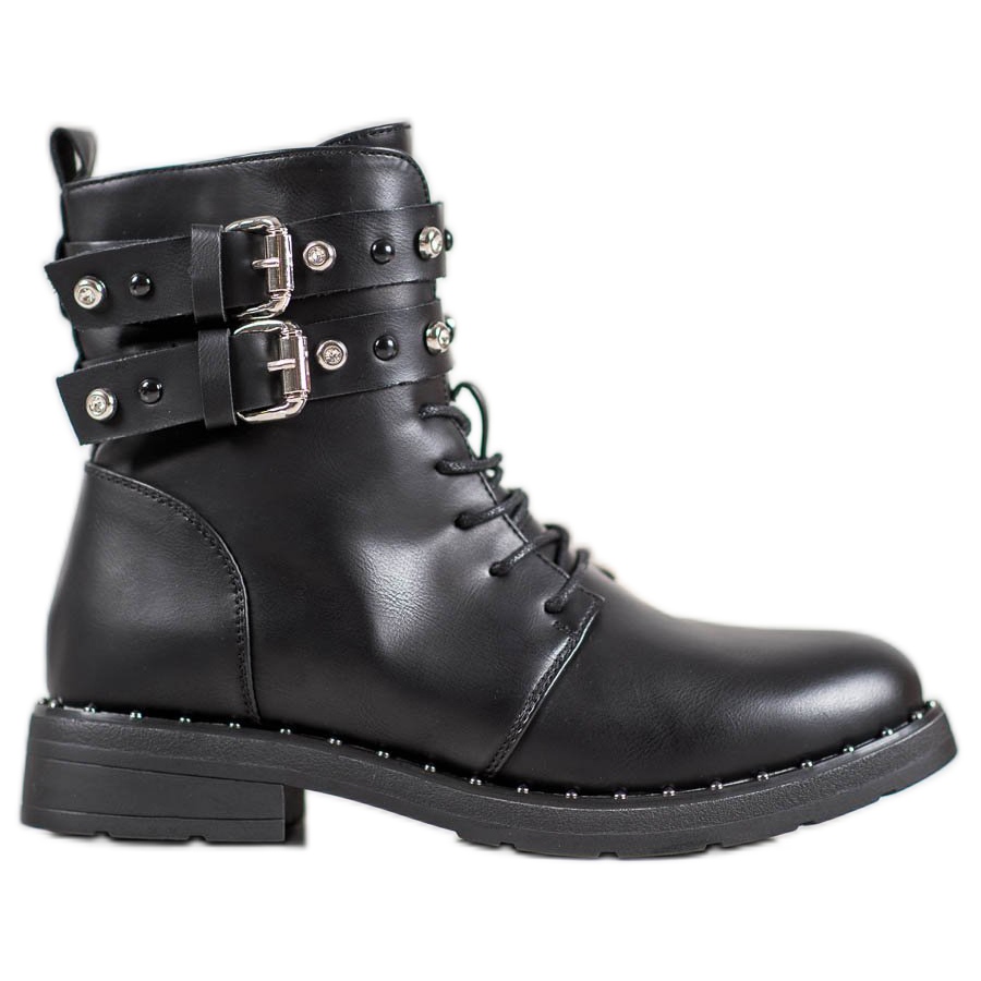 Izrađeni od visokokvalitetne ekološke kože, radnici ne samo da izgledaju impresivno, već su i ekološki prihvatljivi. Njihovi kompaktni, okrugli prsti i izgrađena, ukrućena peta jamče ne samo moderan izgled, već i stabilnost i udobnost korištenja. Dodatnu estetsku vrijednost imaju zahvaljujući ukrasnim kopčama, kamenčićima i kamenčićima koji privlače pažnju i naglašavaju njihov jedinstven stil.