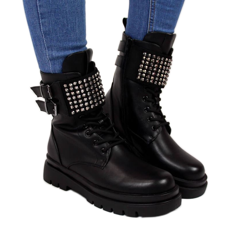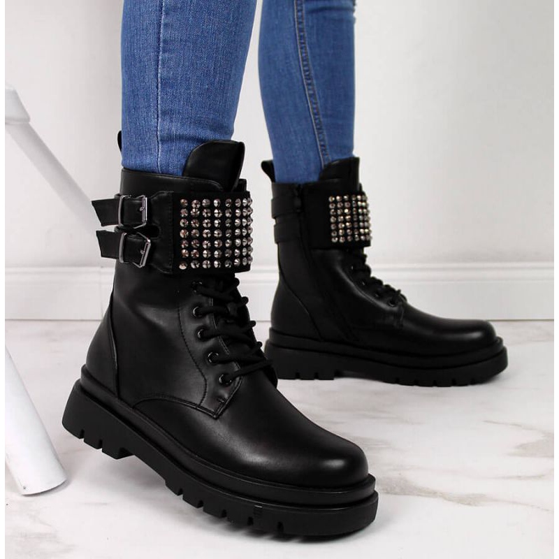 Radnici s Evento Rhinestones u EVE305 - Crni, elegantni i praktični čizmi za hladnije dane.