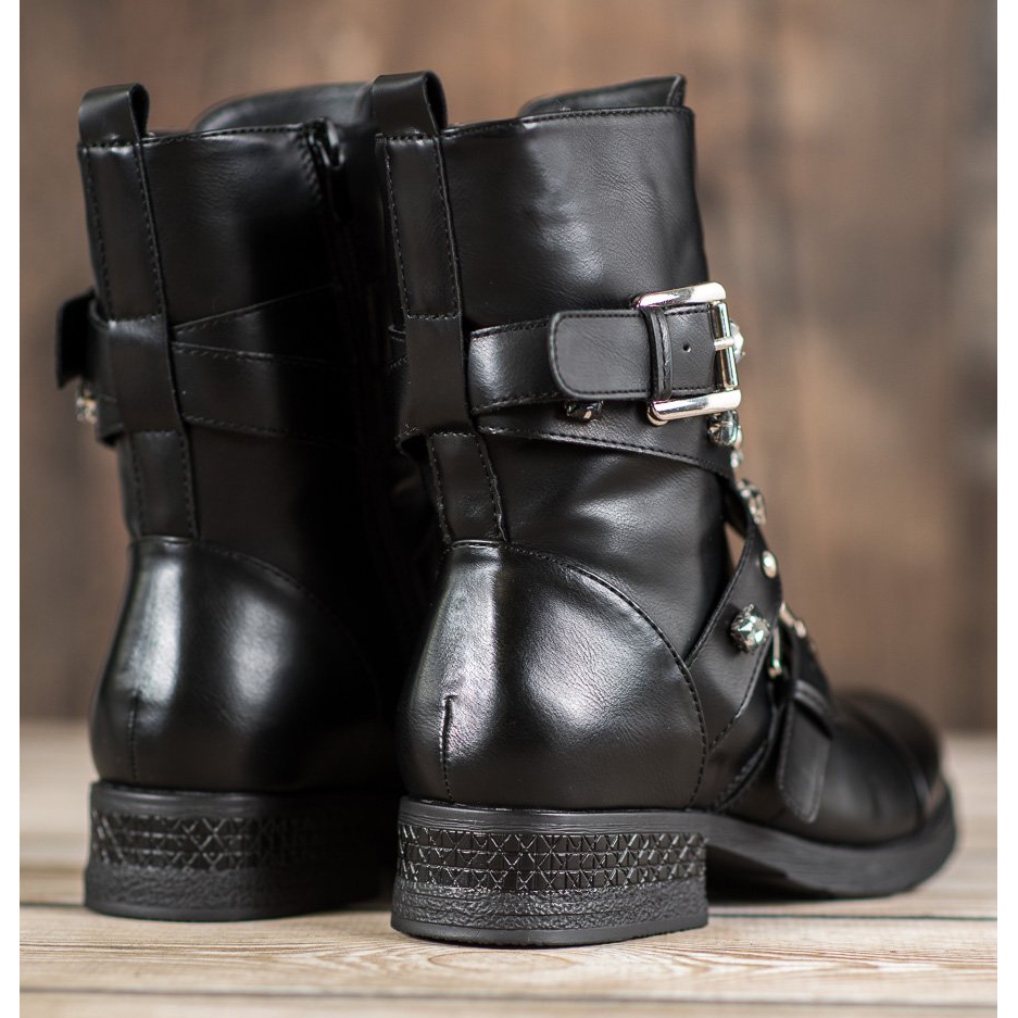 Crne Kayla radnice s ukrasnim remenom savršen su izbor za žene koje žele unijeti rock naglasak u svoju garderobu. Ove elegantne čizme kombiniraju udobnost s originalnim dizajnom, postajući savršena nadopuna ležernom i elegantnijem stilu.