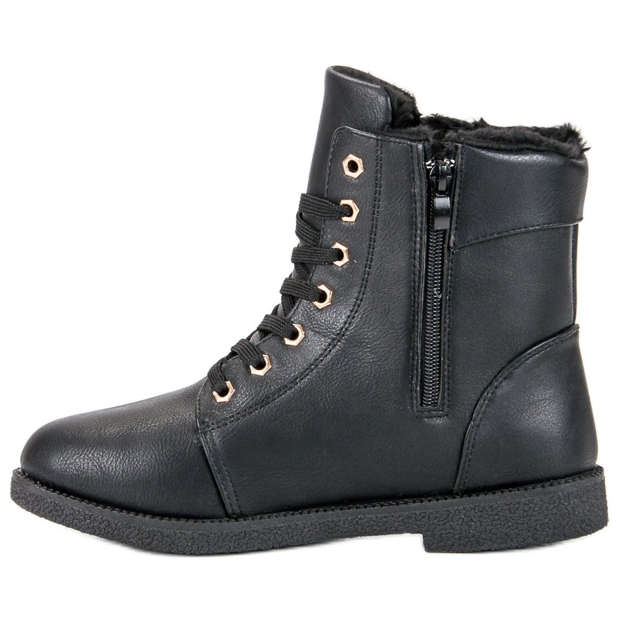 Unutrašnjost radnika je izolirana mekim krznom, što ih čini idealnim izborom za hladne jesenske i zimske dane. Omogućuju jednostavno prilagođavanje stopalu zahvaljujući kopčanju na vezanje, a dodatni patentni zatvarač sa strane olakšava obuvanje. Elegantan amblem na vrhu cipele i suptilni ukrasni detalji na potplatu dodaju karakter, čineći ih ne samo praktičnim već i modernim izborom.