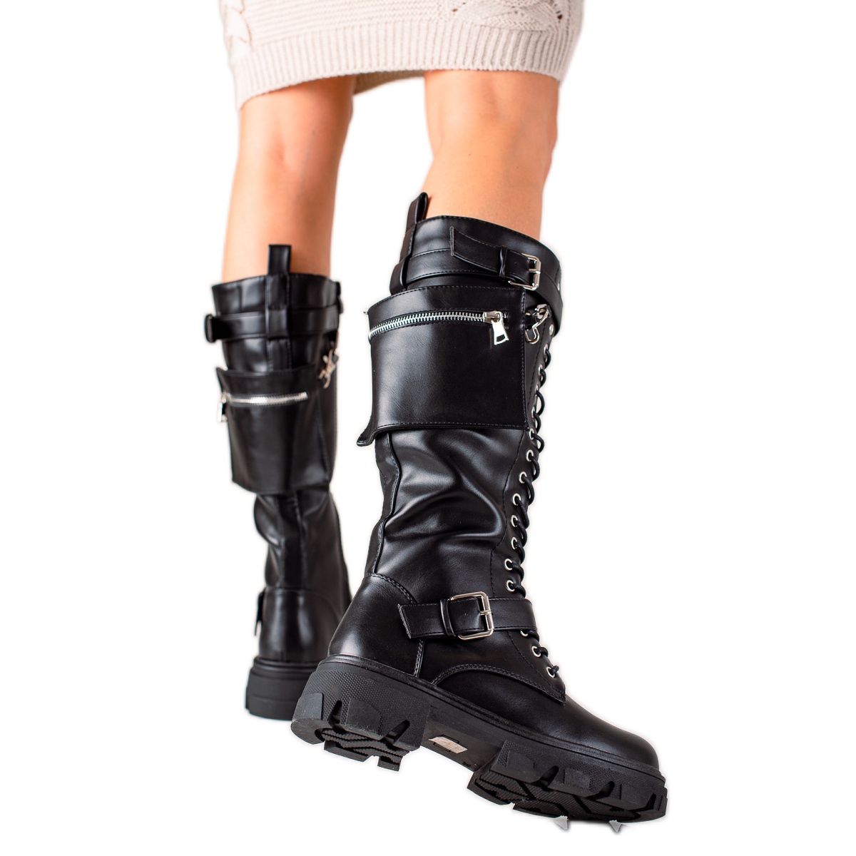 Zahvaljujući patentnom zatvaraču i vezivanju, obuvanje i izuvanje cipela postaje brza i ugodna aktivnost. Čizme su dostupne u širini natkoljenice od 34 cm i visine do sredine lista, što odlično pristaje uz različite odjevne stilove.