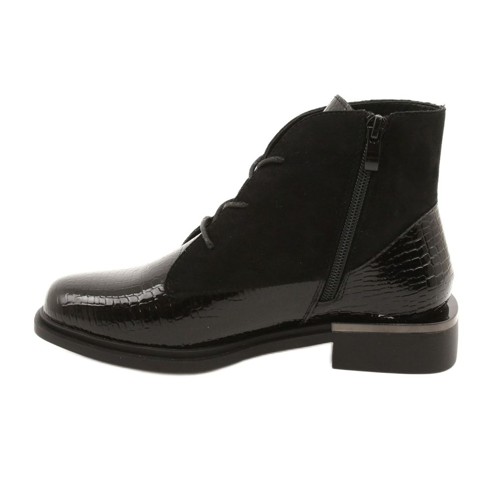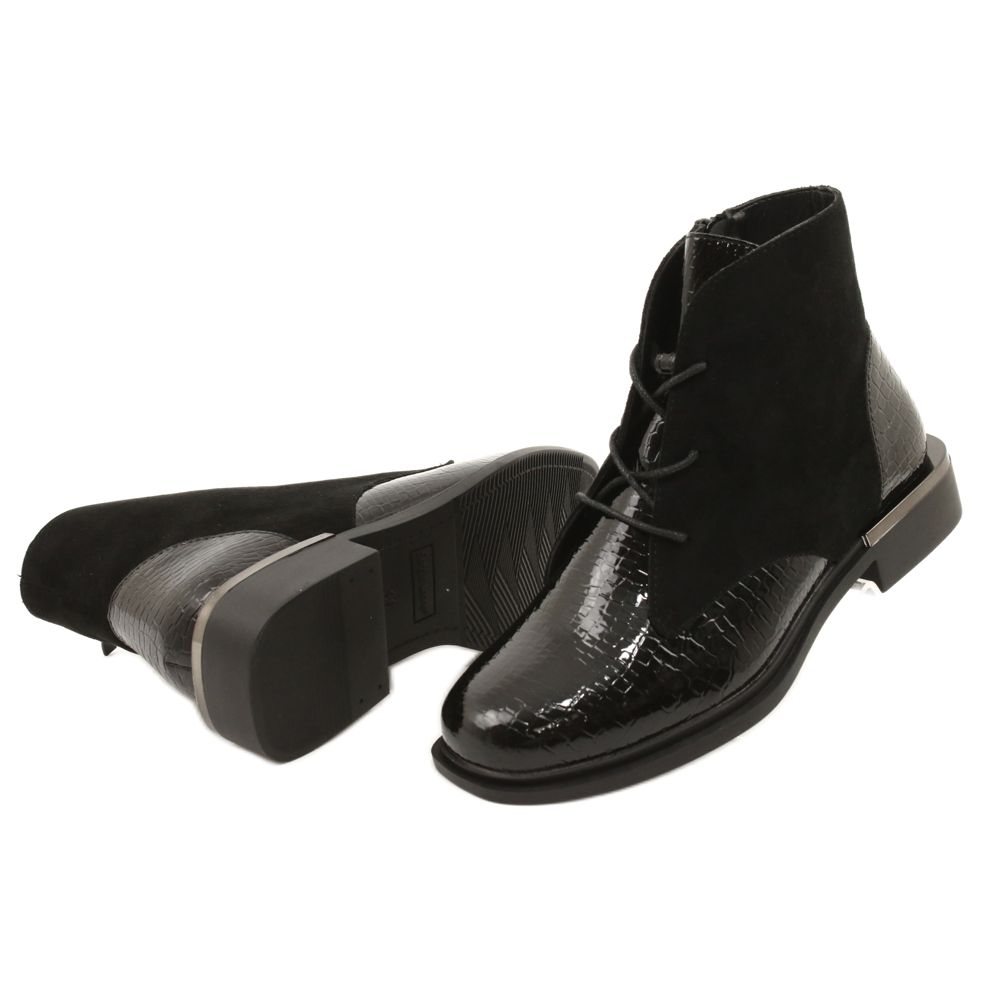 Model BT401, u klasičnoj crnoj boji, savršena je nadopuna svakoj ženskoj garderobi. Zahvaljujući lakiranoj završnici i dominantnom životinjskom uzorku, postaju moderan akcent koji privlači pažnju. Čizme imaju okrugli vrh, što dodaje suptilnost, a njihova ravna peta znači da u njima možete hodati dugo sati bez osjećaja umora.