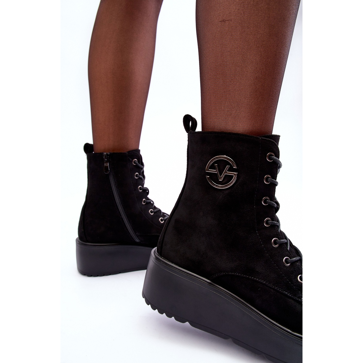 Vinceza Vinceza Radničke gležnjače od brušene kože na masivnoj platformi crne Lavice crno