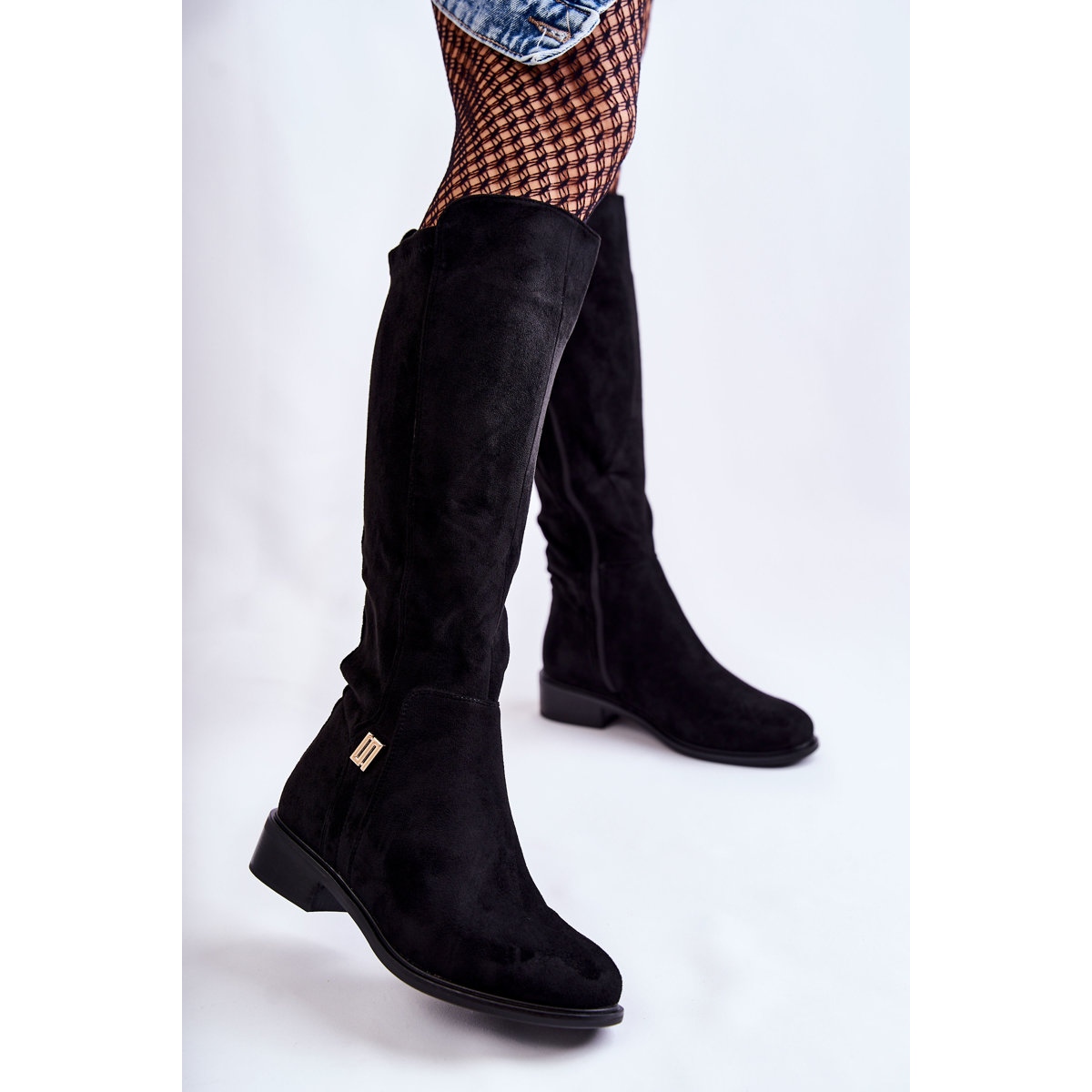 S.Barski Ravne čizme od brušene kože crne Giulia crna