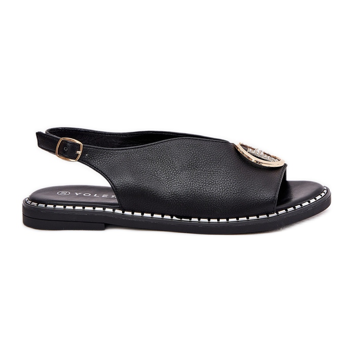 Pojedinosti: Ravne elegantne sandale s crnim ukrasom crna
