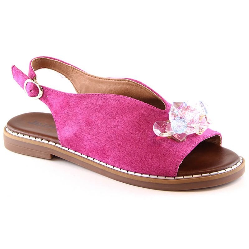 Jezzi Ravne sandale od brušene kože s kristalima Jezzi W RMR2266-2 boje fuksije ružičasta