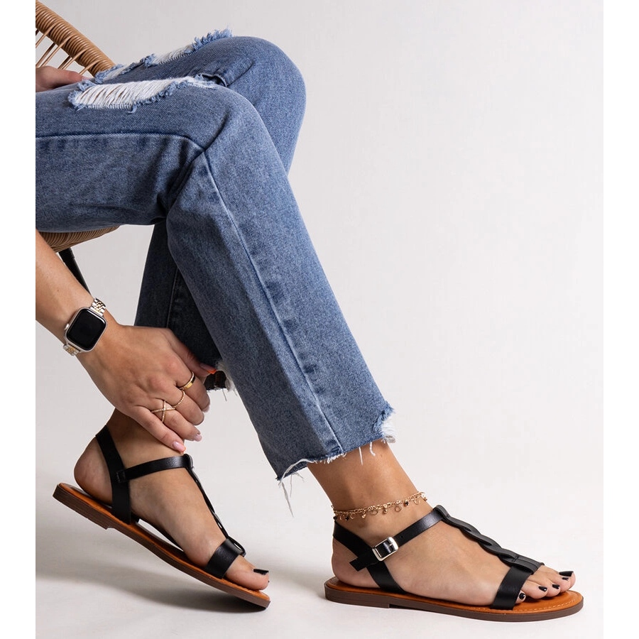 Pojedinosti: Ravne sandale od crnog Amarantha crna