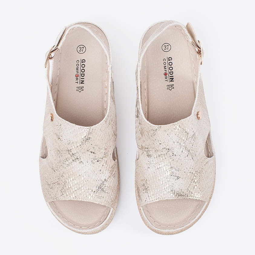 Otkrijte savršene ljetne sandale - Goodin ravne sandale s taupe bež kopčama. Ovo je savršena kombinacija stila i udobnosti koja će ispuniti očekivanja čak i najzahtjevnijih žena. Njihova klasična konstrukcija s otvorenom petom pruža izvrsnu ventilaciju zahvaljujući kojoj stopala drže svježinu u vrućim danima.