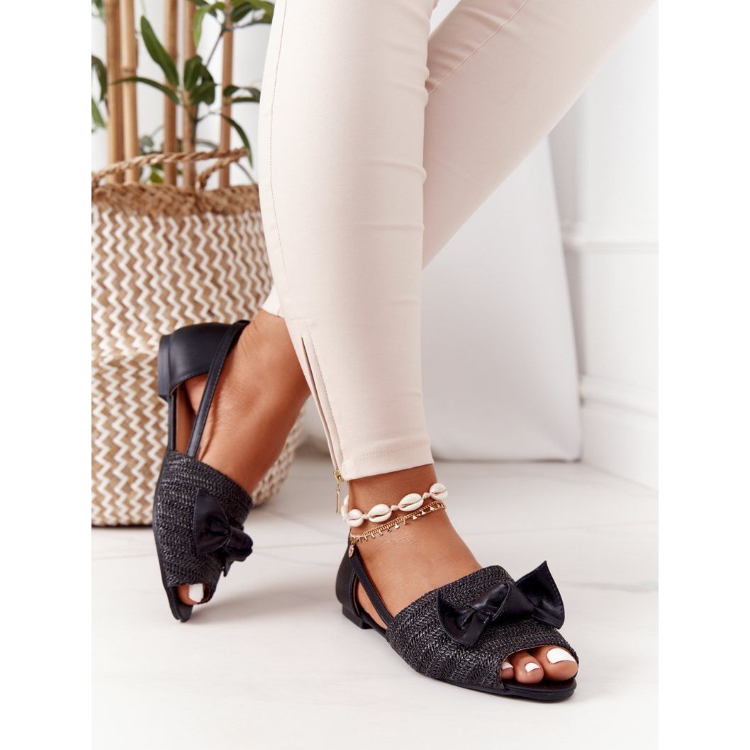 Pojedinosti: Ravne sandale s pletenom Lu Boo crnom crna