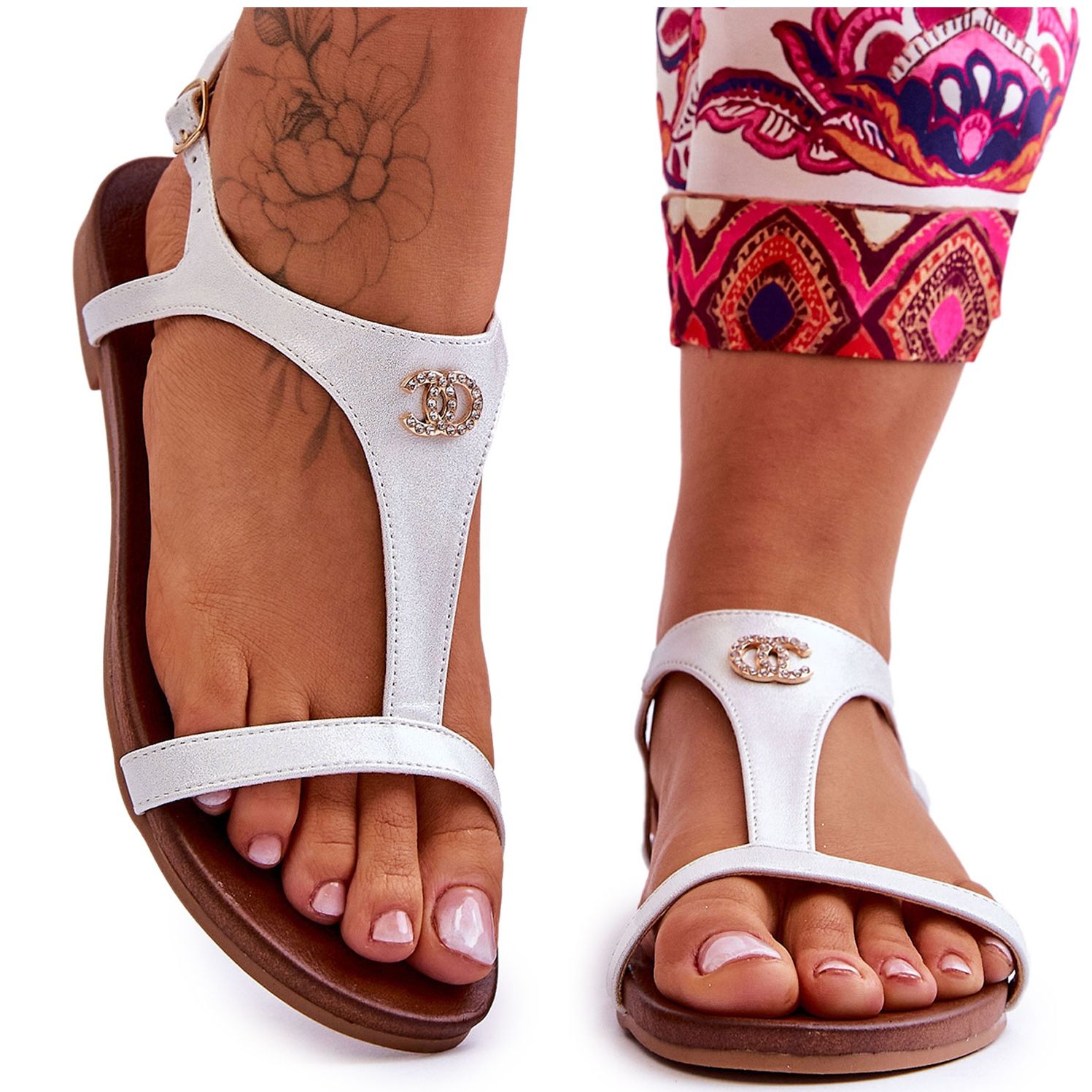 S.Barski Ravne sandale s ukrasom S.Barski KV-5541-45 Srebro