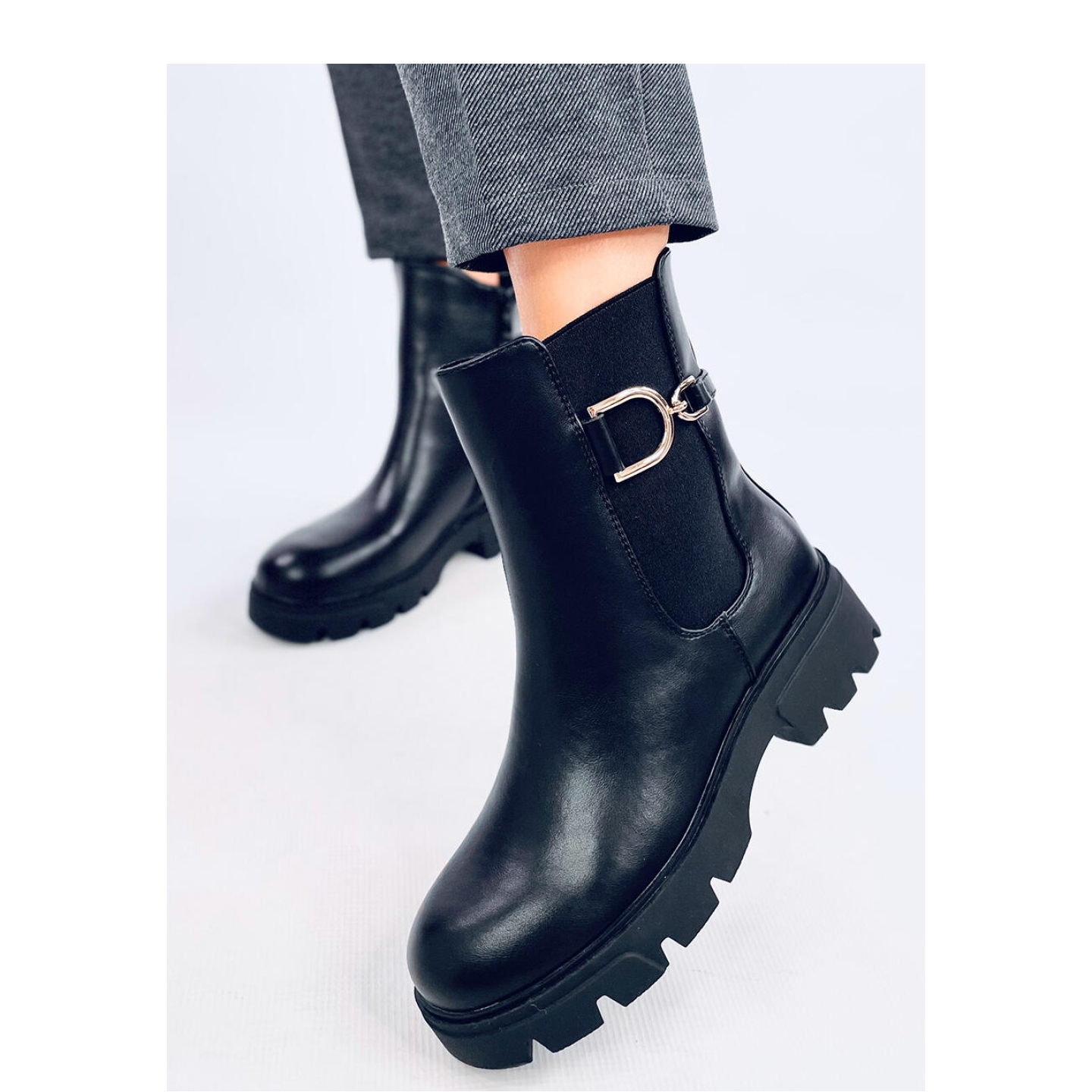 Karakterizira ih klasični rez s fleksibilnim umetanjem na strane, što olakšava stavljanje i skidanje. Dodatna prednost je praktični zip učvršćivač, koji pruža pogodnost upotrebe. Peta peta široka 5 centimetara uglavnom podržava cijelu figuru, a platforma za 2 centimetra dodaje dodatnu udobnost prilikom nošenja.