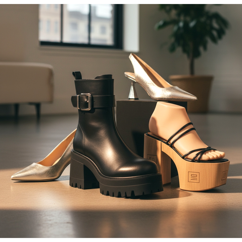 Prve na listi cipela koje se vraćaju su platforme s ojačanim vrhom i masivnim potplatom. U prvim 2000-ima najčešće su bile crne ili srebrne, s metalnom kopčom ili agresivnim potplatom. Moderna verzija je uravnoteženija: ista masivnost, ali elegantniji materijali i manje drečav stil.