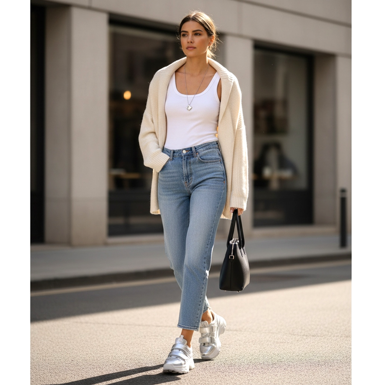 Ključ nošenja Y2K retro 2026. je ravnoteža: jedan retro element po stilu. Ako nosite masivne platforme iz 2000-ih, neka ostatak vaše odjeće bude moderan i minimalan: ravne traperice, čisti top, jedan modni dodatak.