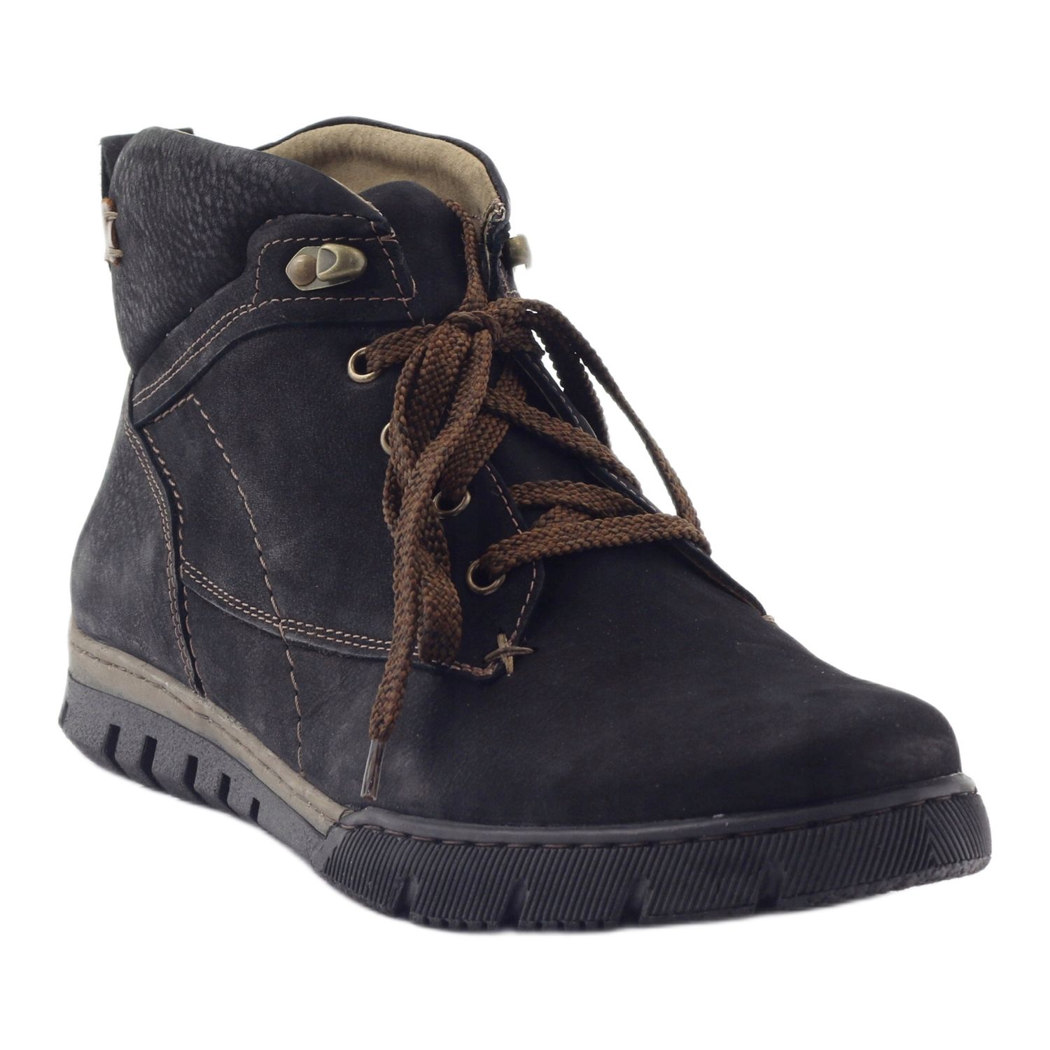 Unutrašnjost cipela je izolirana krznom za cipele, zahvaljujući čemu stopala ostaju topla i udobna čak iu zimskim danima. Vezanje na vezanje omogućuje individualnu prilagodbu stopalu, što povećava udobnost nošenja. Izvorni šavovi i smeđi umetci na gornjem dijelu daju karakter, čineći ove čizme savršenom nadopunom mnogim stilovima.