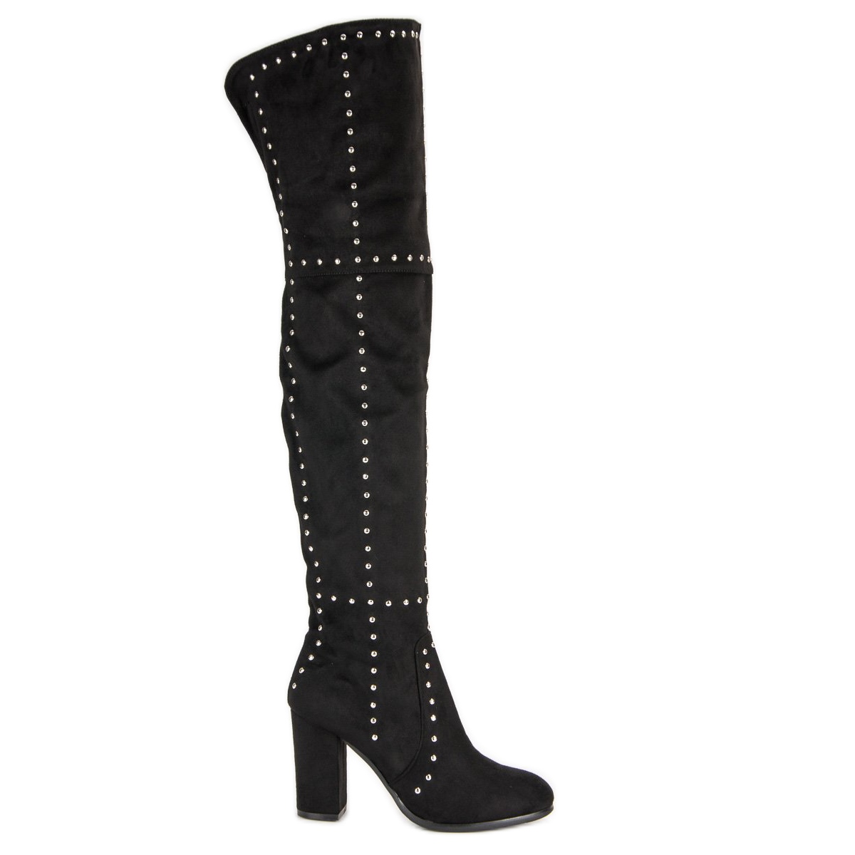 Kopčaju se praktičnim patentnim zatvaračem, ove impresivne cipele osiguravaju jednostavnost nošenja i savršeno pristajanje uz nogu. Visoki gornji dio koji seže iznad koljena učinkovito štiti od hladnoće, a stabilna peta od 9 cm daje samopouzdanje pri svakom koraku. Glatki, sintetički potplat jamči izdržljivost i udobnost nošenja, bez obzira na priliku.