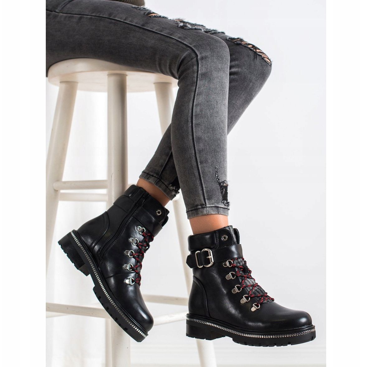 Otkrijte jedinstven stil i udobnost u kamenim radnicima iz SHELOVET-a. Ove ženske crne gležnjače izvrstan su svakodnevni izbor, savršene za sezonu jesen/zima. Izrađene od visokokvalitetne ekološke kože, kombiniraju moderan dizajn s brigom za okoliš. Suptilni ukrasi, poput ukrasne kopče i kamenčića, daju im jedinstven karakter koji ih razlikuje od ostalih modela.