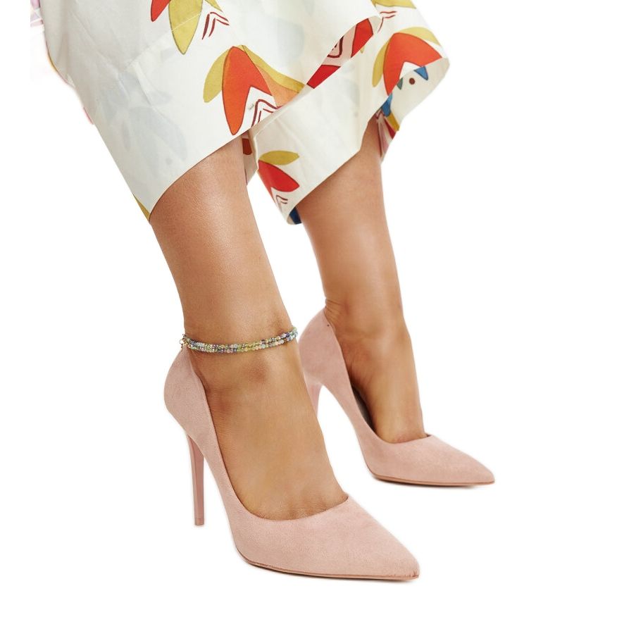 Inna marka Ružičaste štikle s kožnim umetkom Amedie ružičasta