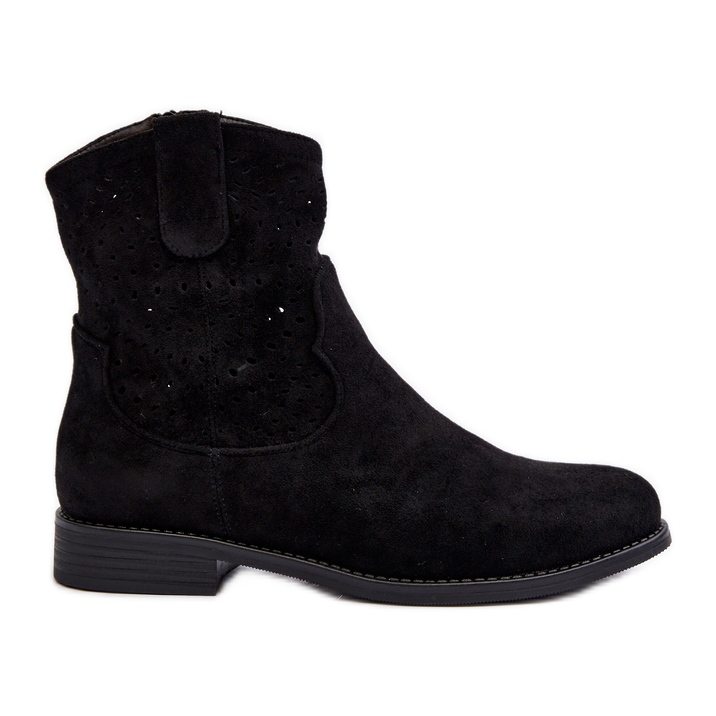 Otvoreni gornji dio, koji je pričvršćen udobnim patentnim zatvaračem, pruža izvrsnu ventilaciju, a istovremeno dodaje modni naglasak. Sa zaobljenim nosom i ravnom petom s visinom od 3 cm, ove čizme osiguravaju stabilnost i utjehu tijekom dana.
