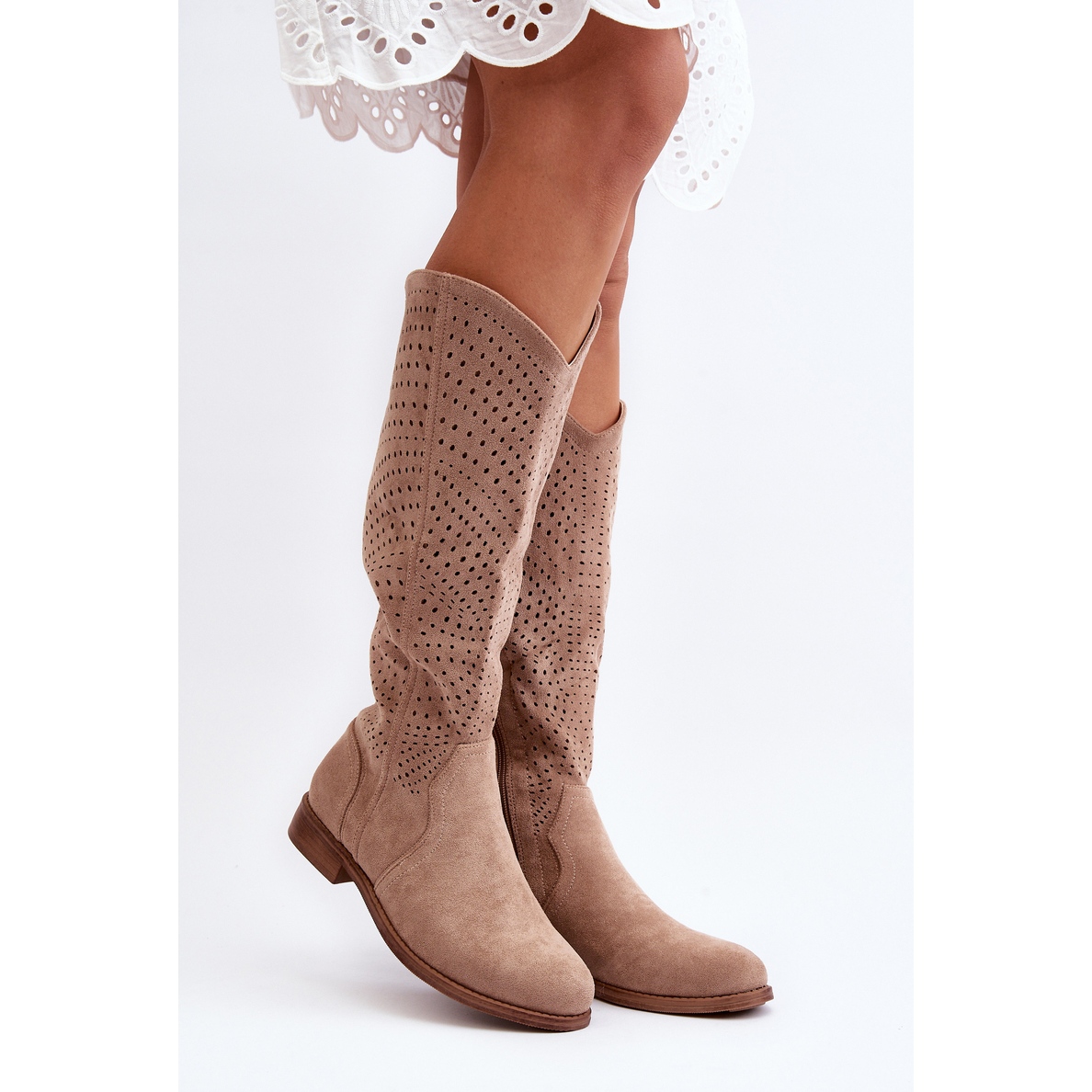 S.Barski S.barski HY66-150 Ažur čizme na ravnu petu Bež