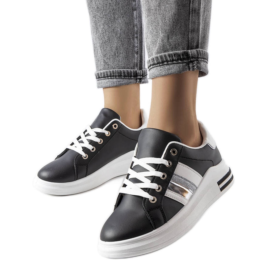 Elegantne, crne tenisice na Sacaton platformi kombiniraju moderan dizajn s udobnošću. Glatki ekološki kožni gornji dio, bijeli gumeni potplat s visinom od 4 cm, a suptilni rhinestones stvara univerzalni model koji će nadopuniti i sportske i casual stilizacije.