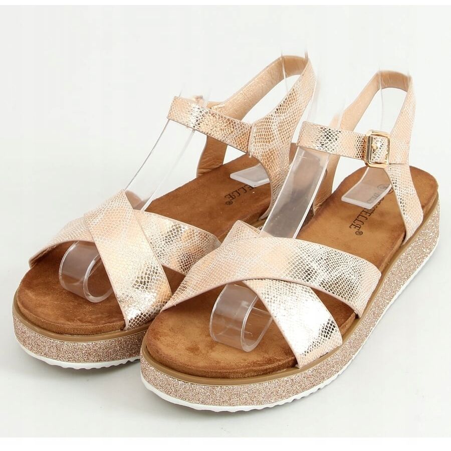 Otkrijte eleganciju i udobnost uz ženske sandale u boji šampanjca 100-139SA-1 Champagne! Ove jedinstvene sandale, dostupne u raznobojnoj ružičastoj verziji, savršen su izbor kako za svakodnevno nošenje tako i za posebne prilike. Izrađene od ekološke kože, izgledaju iznimno elegantno zahvaljujući sjajnoj, svjetlucavoj završnici koja će zasigurno privući pozornost.