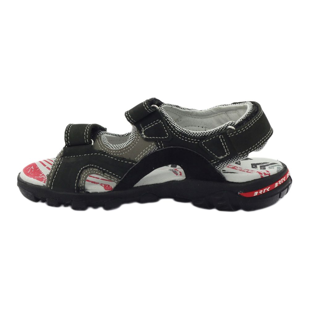 Bartek kožne sportske sandale za dječake 19108 (19108-167) - udobnost i sigurnost za svaki dan. Elegantan crno-sivi dizajn s crvenim detaljima čini sandale savršenima za svakodnevne aktivnosti i elegantnije stilove. Izrađene u potpunosti od prirodne kože, pružaju dobru ventilaciju i izdržljivost.