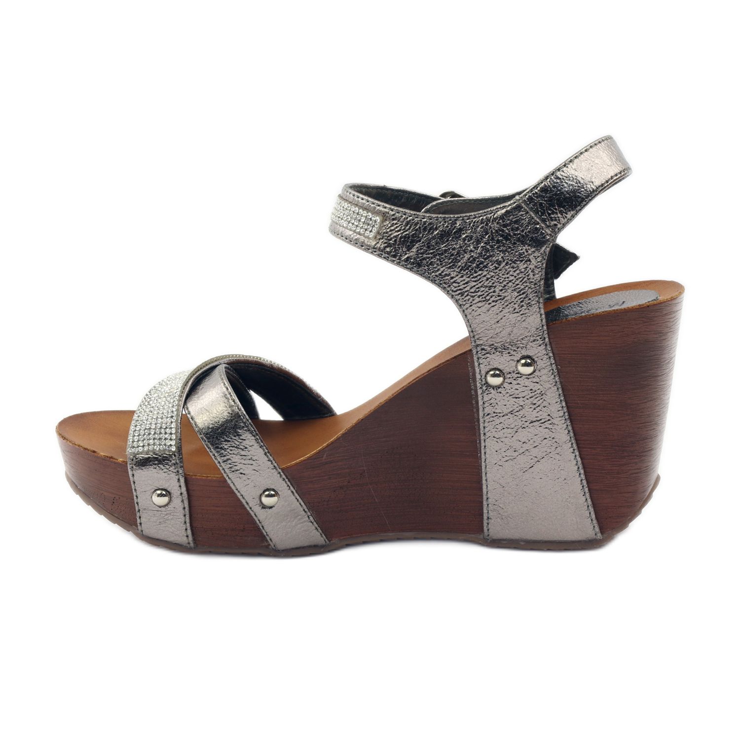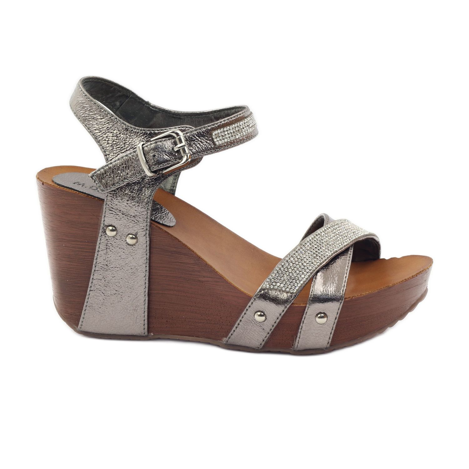 Pojedinosti: M.Daszyński Sandale na klin Daszyński sa kubičnim cirkonima siva