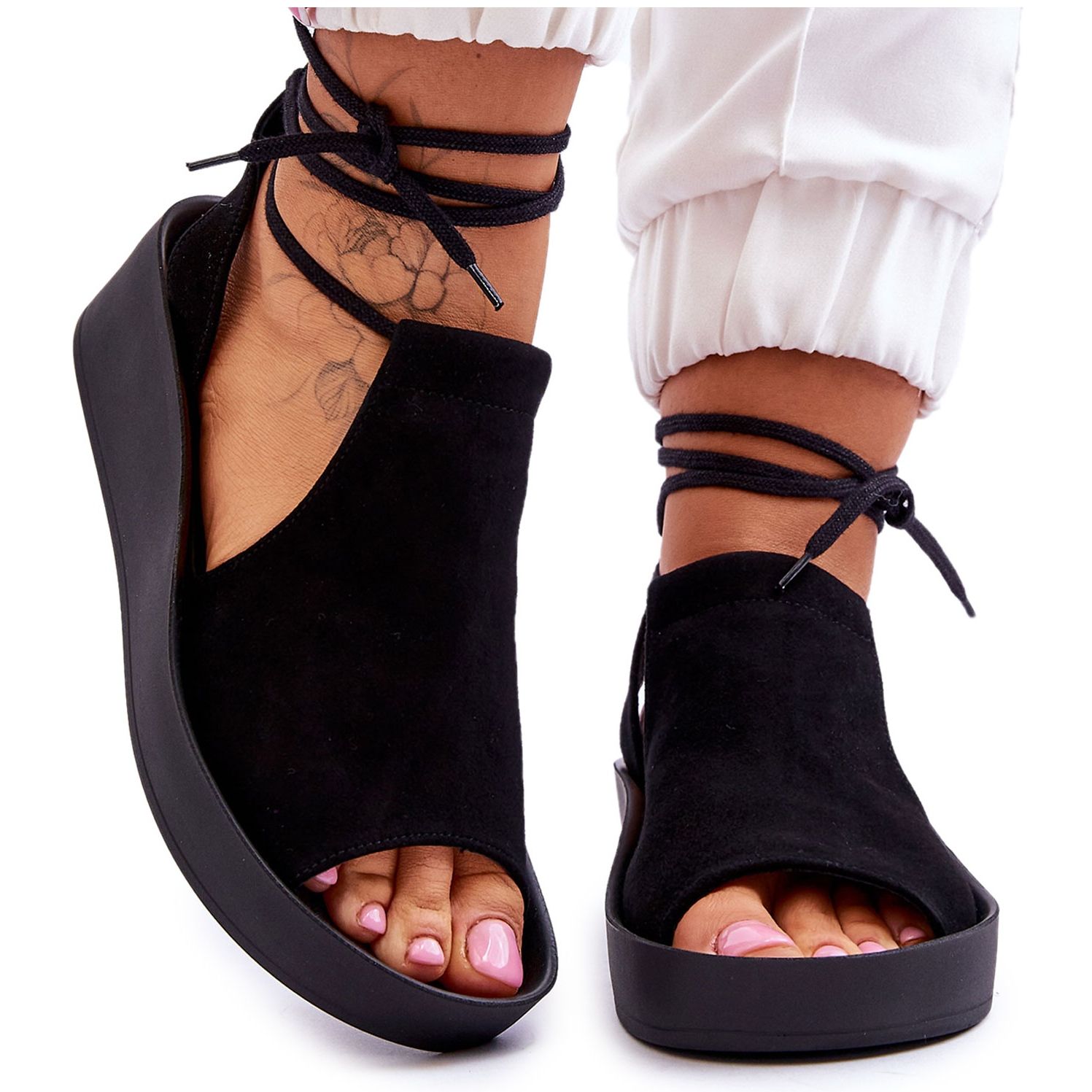 Nicole Sandale na klin od brušene kože Nicole 2743/002 crne crno