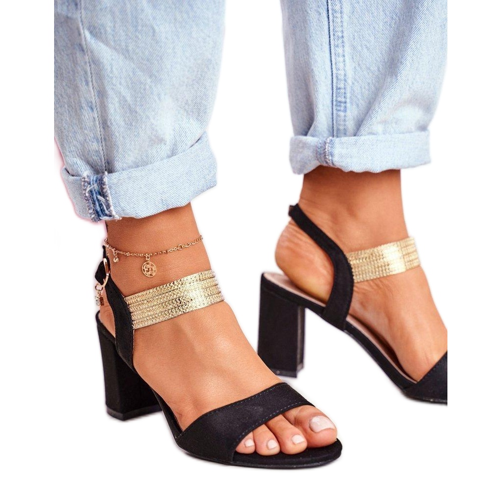 Sandale na visoku petu s ukrasnim crnim remenom crna