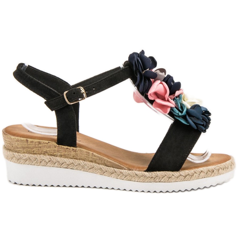 Pojedinosti: SHELOVET Sandale od antilopa s cvijećem crna