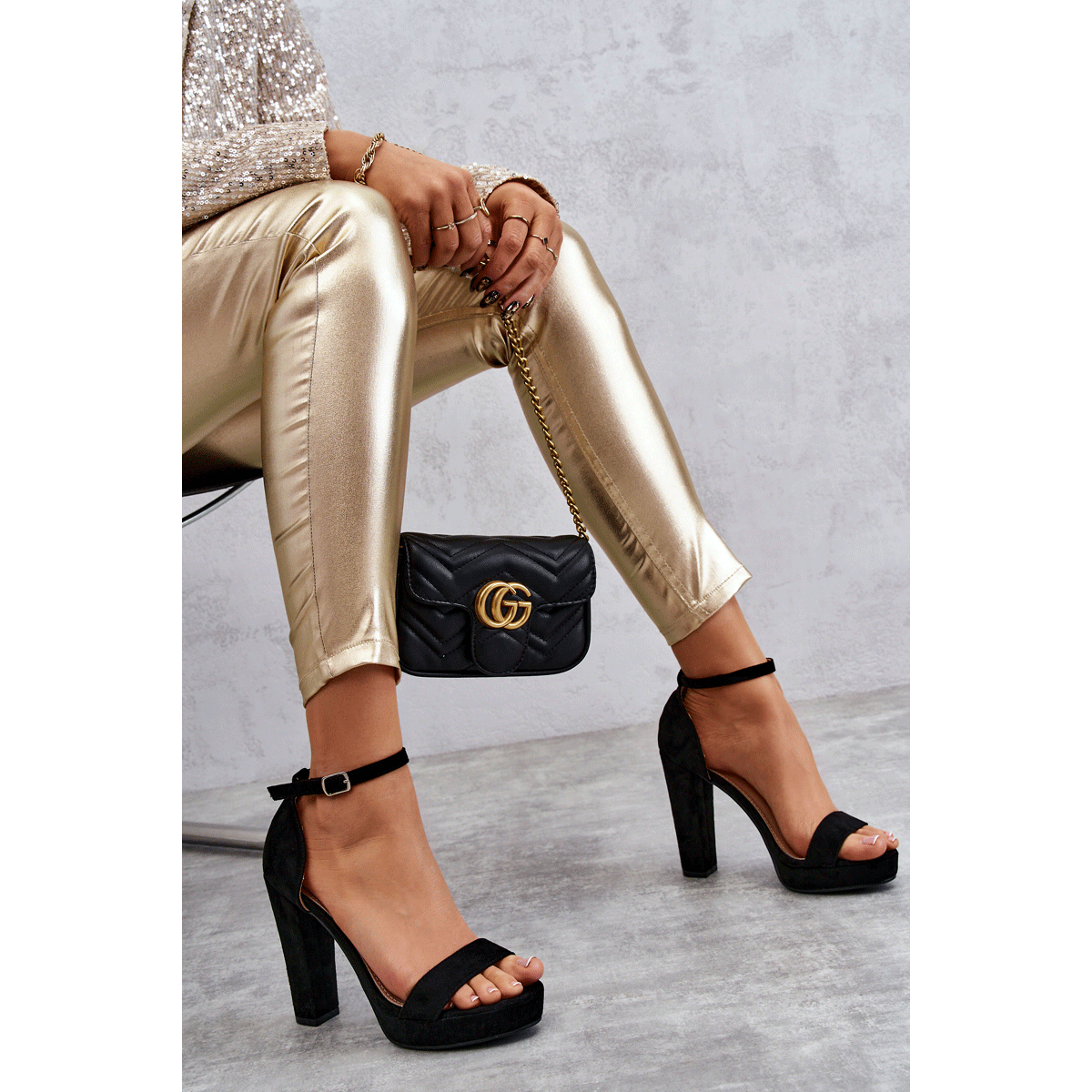 Pojedinosti: Sandale od brušene kože na spektakularnu crnu petu crna