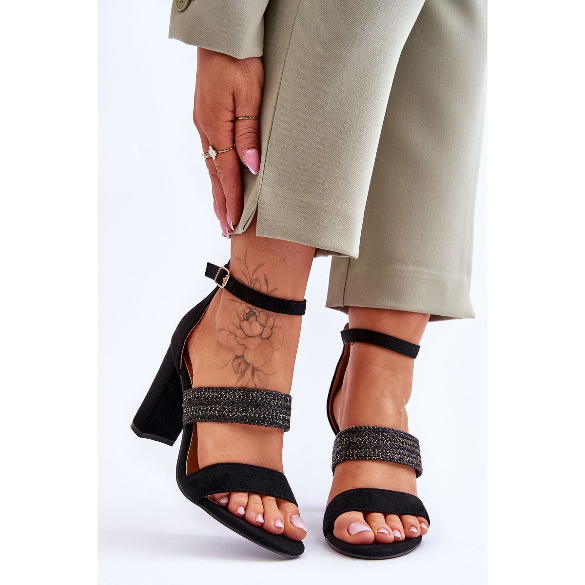 Pojedinosti: Sandale od brušene kože s pletenim remenom na peti Black Roselia crna