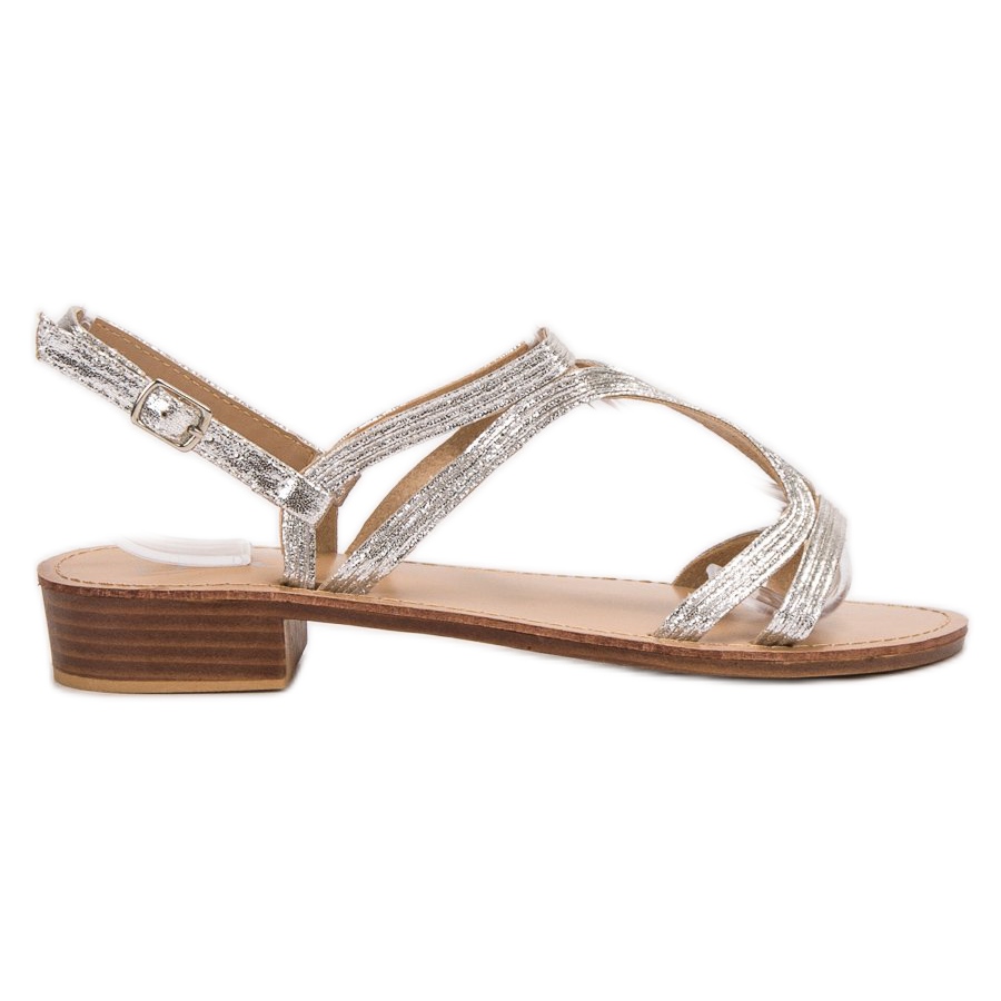 Visina pete od 3 cm daje sandalama dodatnu eleganciju, a istovremeno su dovoljno udobne za svakodnevno nošenje. Dodatna prednost je impresivna metalik tekstura koja privlači poglede i daje joj jedinstven karakter. Kopčanje kopčom osigurava stabilnost, a otvorena peta dodaje lakoću i slobodu.