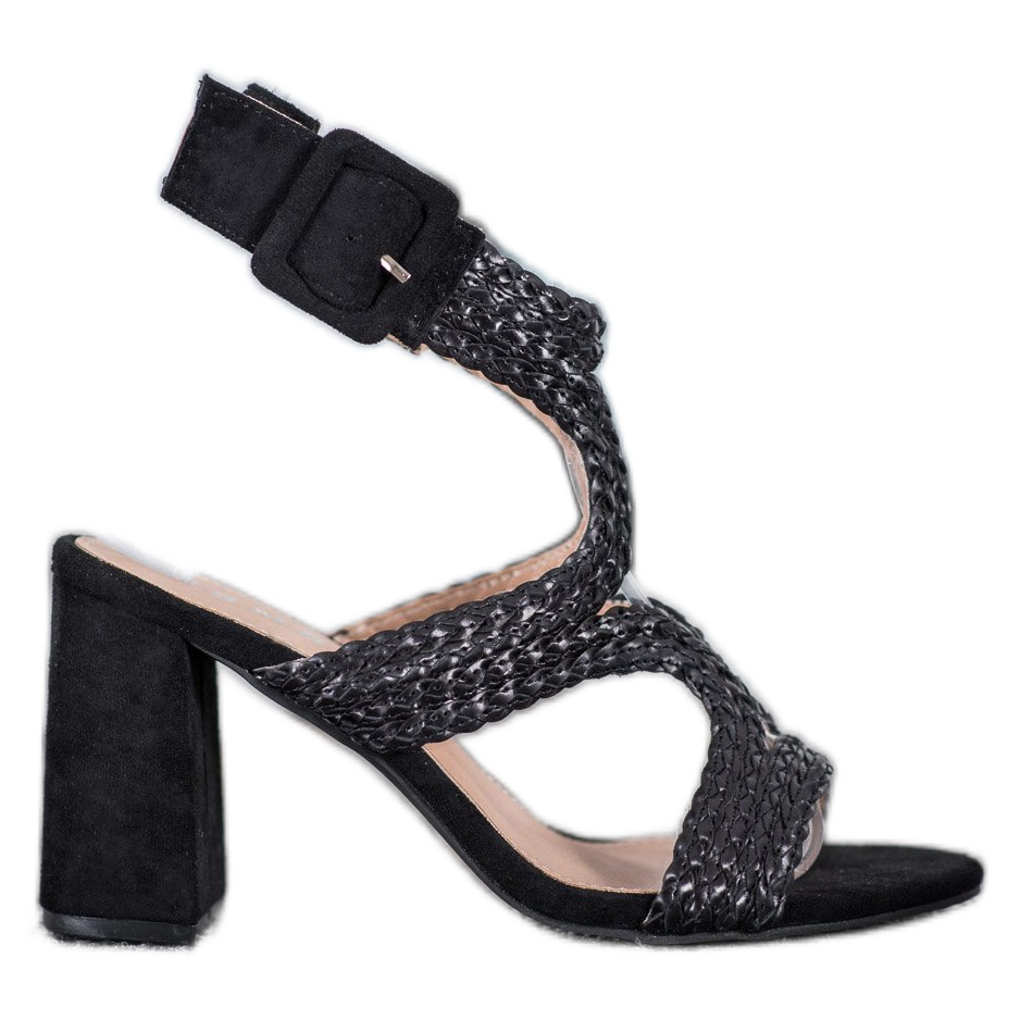 SHELOVET Sandale sa pletenicama na šanku crna