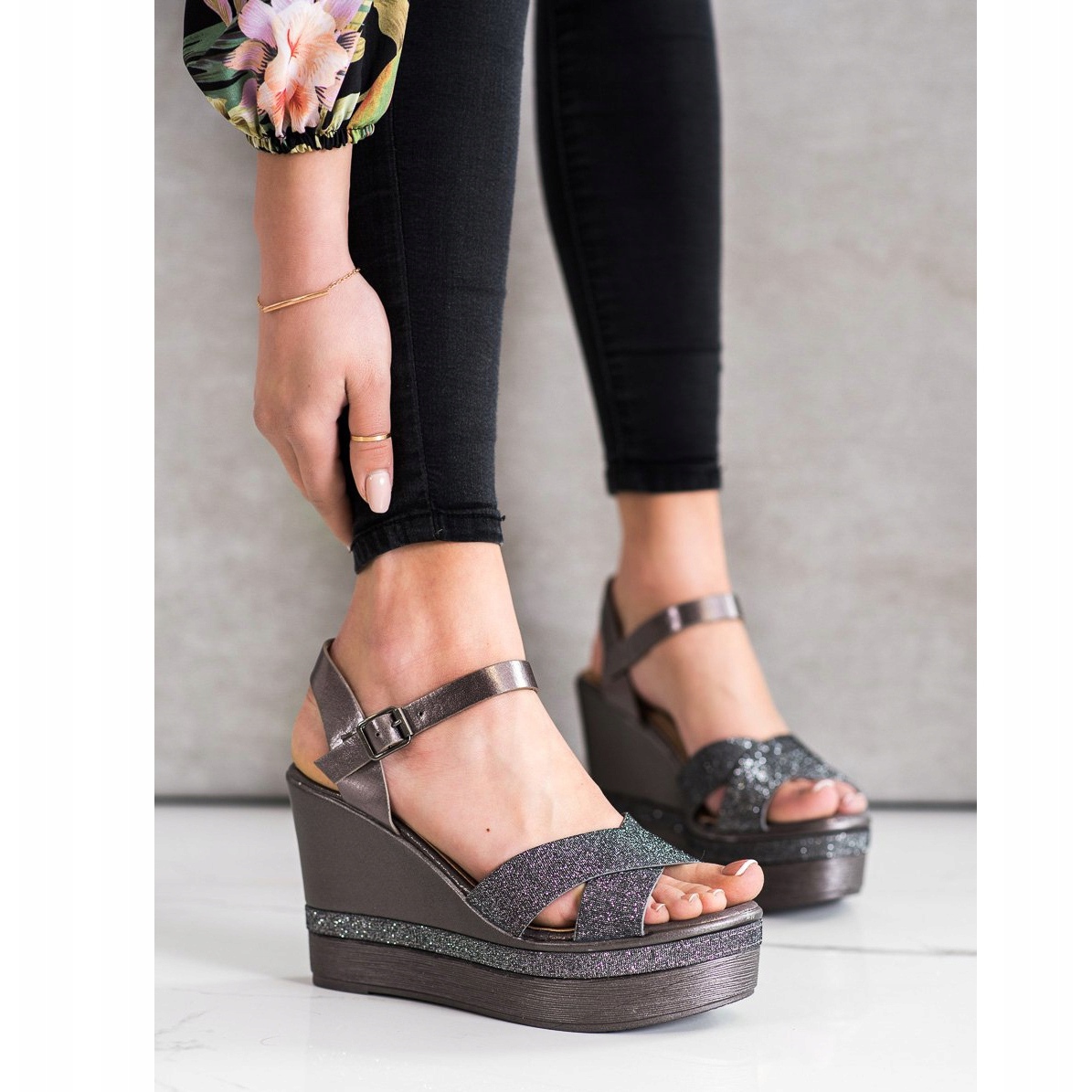 Pojedinosti: Weide Sandale sa sjajnim klinom višebojan siva
