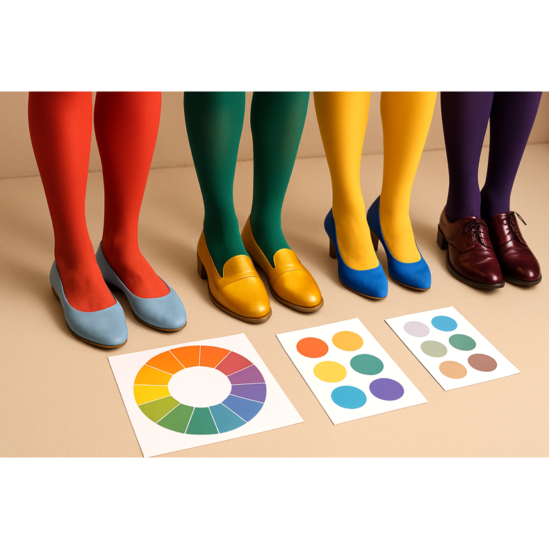Otkrijte umjetnost kombiniranja šarenih tajica i čarapa obuće! Otkrijte teoriju boja, dokazanih kombinacija, podesivih pravila toj prilici i naučite hrabre eksperimente s teksturama i uzorcima.