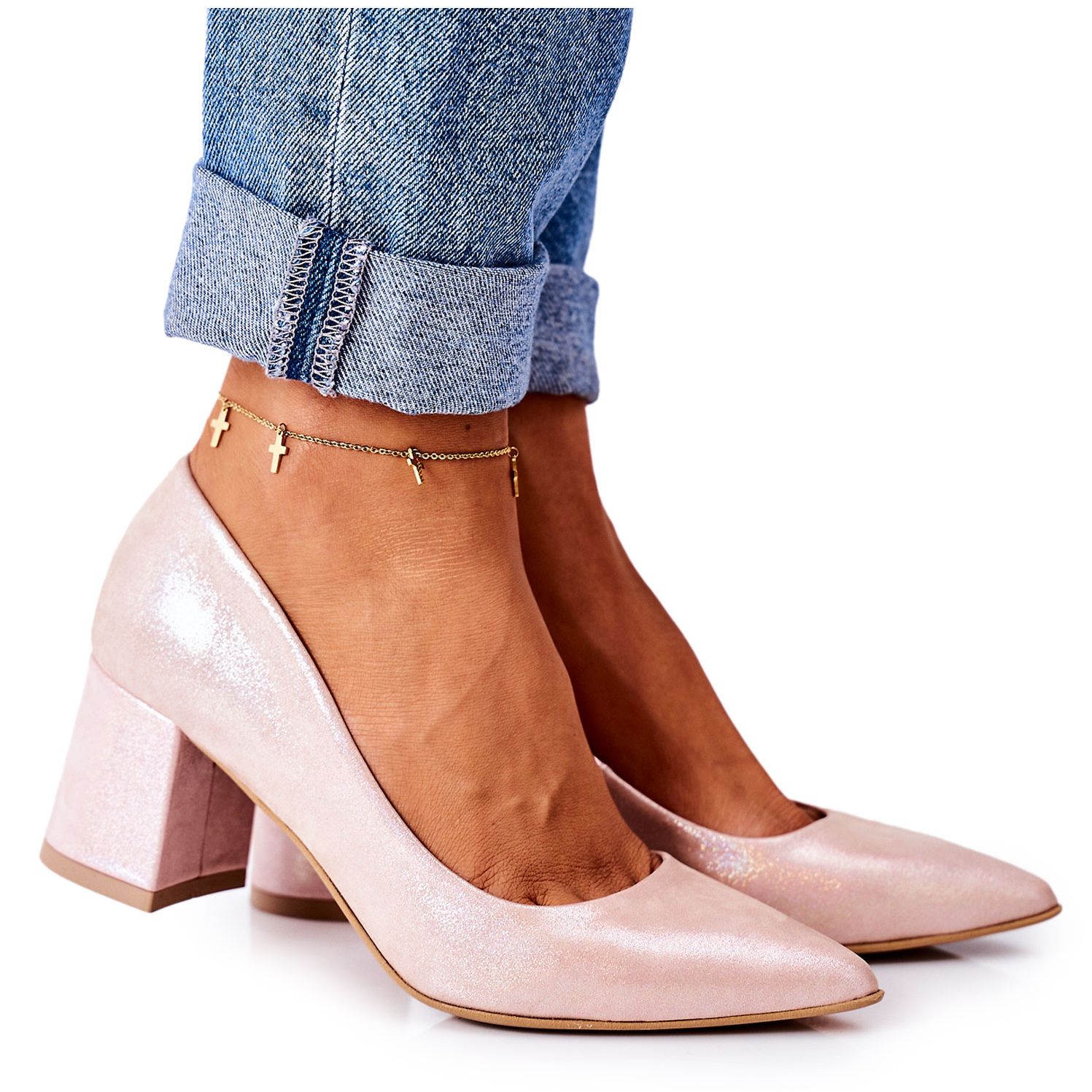 Cipele karakterizira mekani umetak od prirodne kože koji svaki korak čini užitkom. Visina potpetice od 6,5 cm i tip bloka osiguravaju stabilnost, a elegantan špicasti vrh dodaje šik.