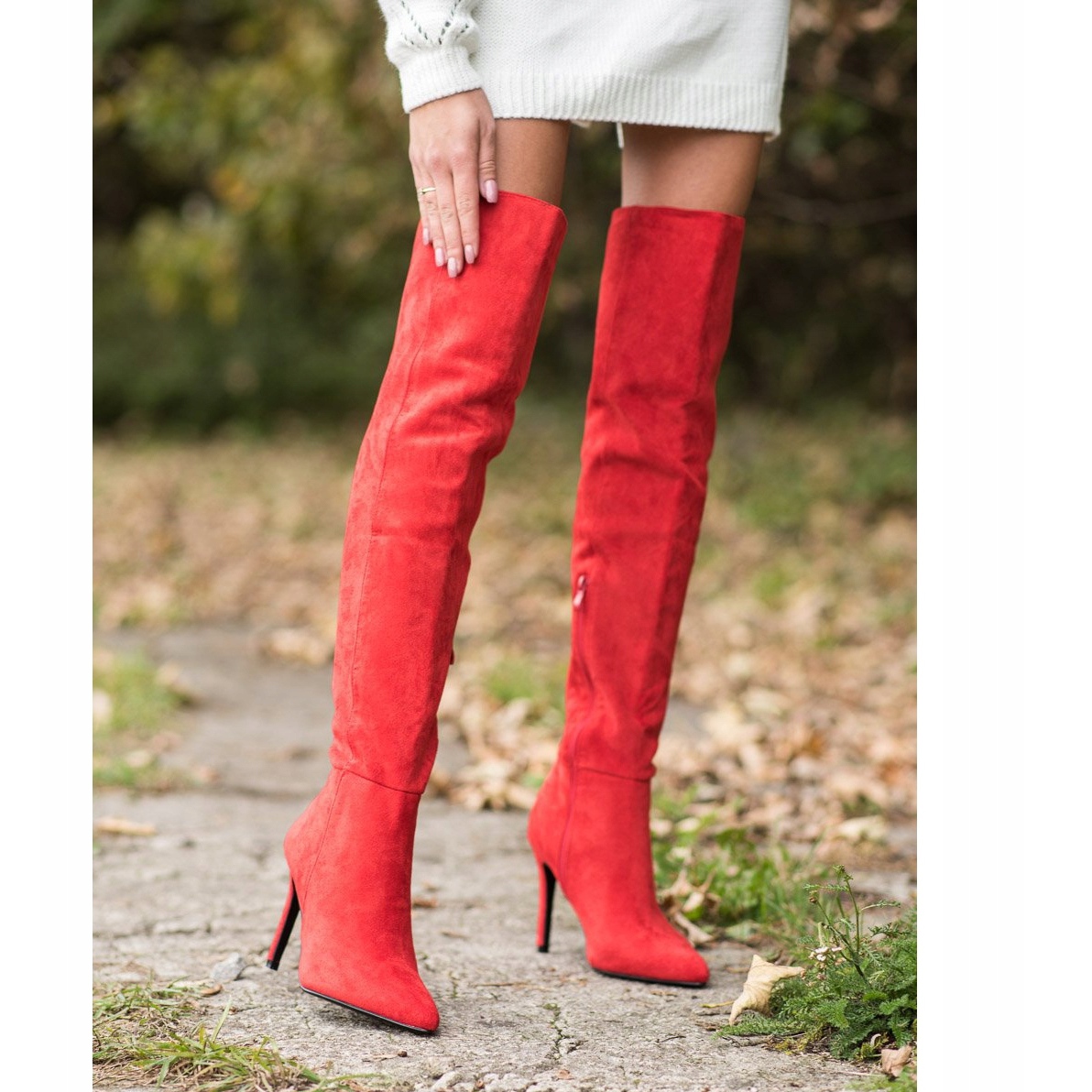 Detalji: Small Swan Seksi čizme s visokim potpeticama crvena