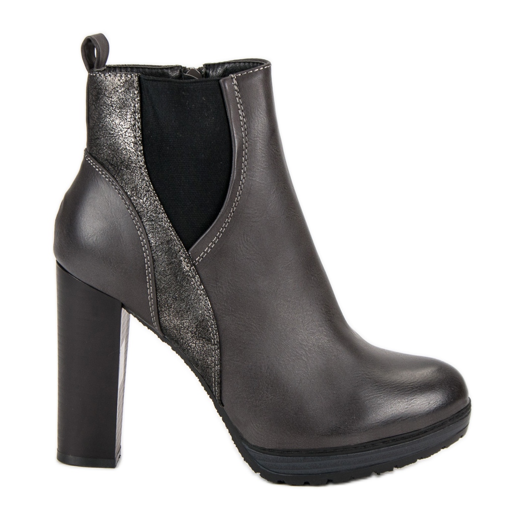 Prepoznatljiv element je materijal jedinstvene teksture postavljen u stražnji dio cipele, koji u sjajnoj sivo-srebrnoj boji daje cjelini eleganciju i glamur. Okrugli vrh čini čizme iznimno udobnima, a njihov sintetički potplat jamči odgovarajuće prianjanje.