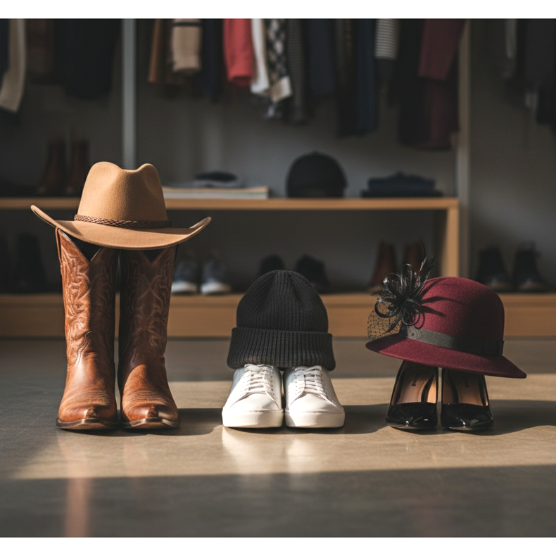 Stil šešira i cipela trebao bi se podudarati. Ako nosite kaubojske čizme, kaubojski šešir bit će prirodan izbor. Ako nosite minimalističke tenisice, poslužit će vam obična bejzbolska kapa ili kapa. Nosite li elegantne štikle, pristajat će šeširi poput fascinatora ili cloche šešira. Miješanje stilova može dovesti do nespojivih izgleda - osim ako to ne učinite namjerno kako biste stvorili moderan kontrast.