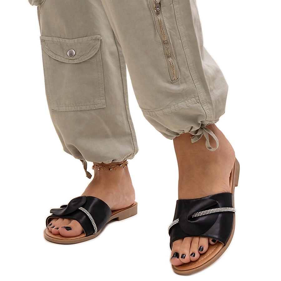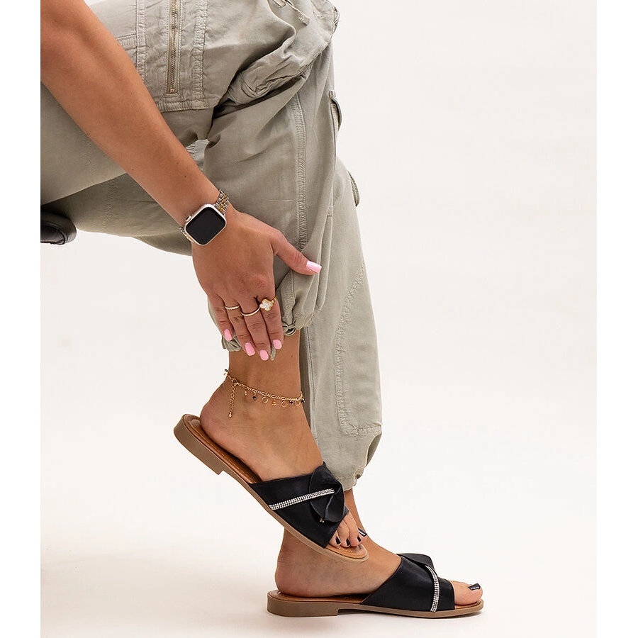 Upoznajte flip jarke ukrašene remenom s Amarari cirkonima u elegantnoj crnoj boji. To je savršen izbor za vruće ljetne dane, kombinirajući moderan dizajn i udobnost nošenja. Zahvaljujući okruglom nožnom prstu i umetnutu strukturu s gumenim prugama, stavljanje i skidanje zaklopki postaje izuzetno jednostavan.
