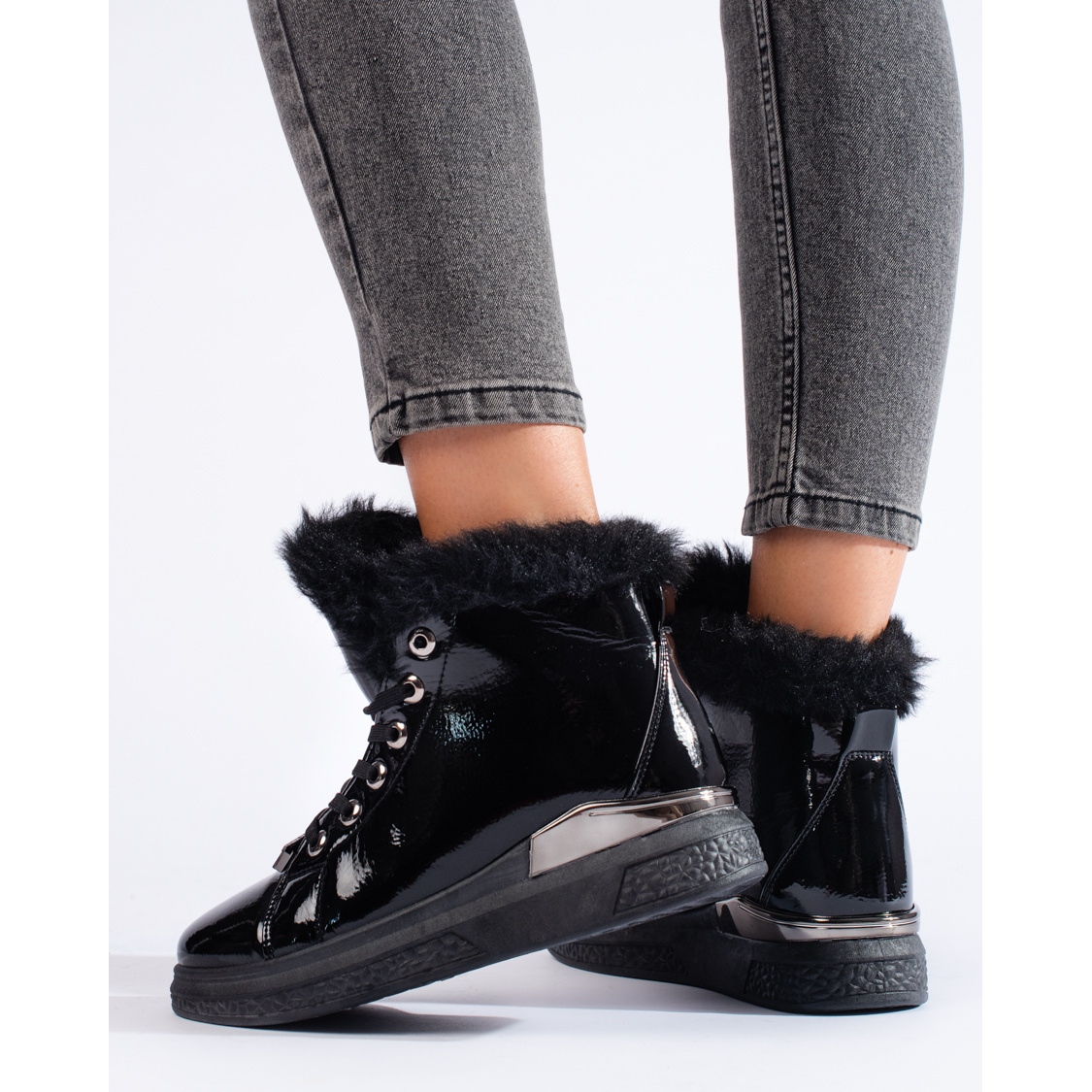 Pojedinosti: Shelovet crne gležnjače na vezanje s krznom crna