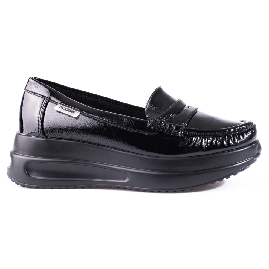 Shelovet mokasine s debelim potplatom elegantan su i moderan izbor za žene koje cijene udobnost i stil. Ove crne lakirane cipele savršene su za svakodnevni stajling i razne proslave.