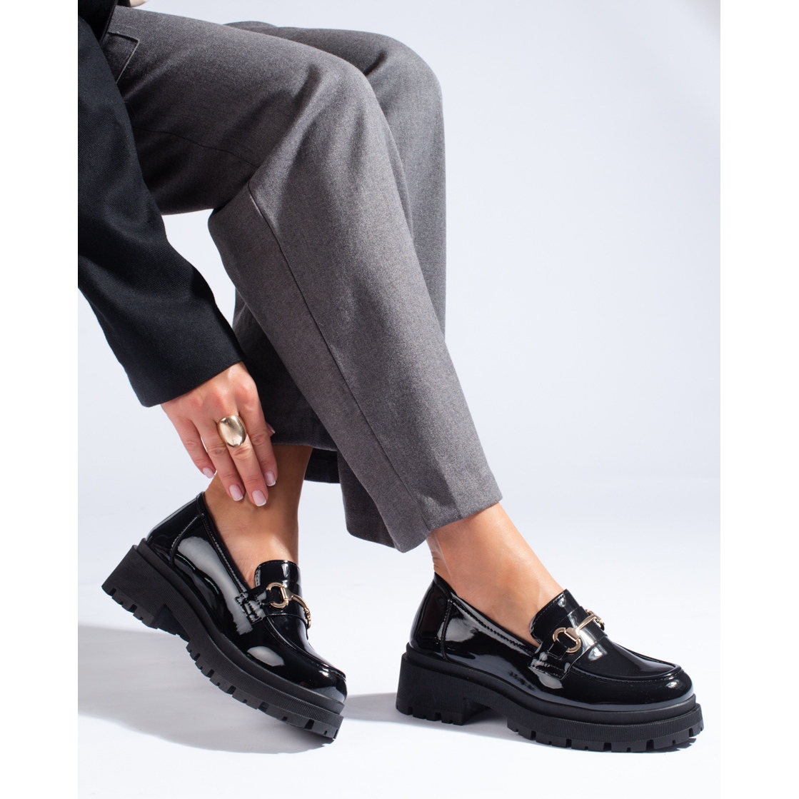 Lakirane mokasine s debelim potplatom iz kolekcije Shelovet izbor su za žene koje ne cijene samo aktualne trendove, već i udobnost i svestranost. Predstavljeni proizvod savršen je spoj elegancije i ležernog stila, što obuću čini savršenom kako za svakodnevnu upotrebu tako i za svečanije prigode.
