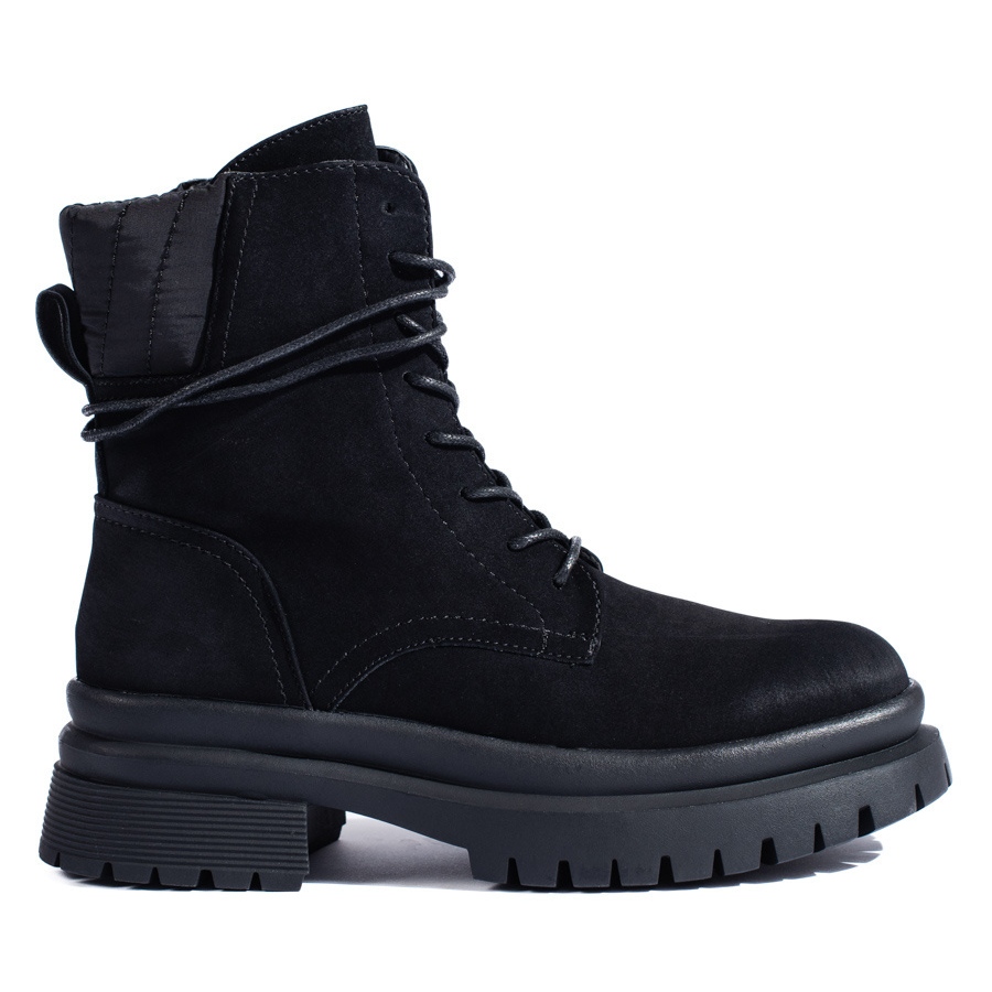 Radnici Sheloveta univerzalni su model koji će naglasiti urbani, pomalo sirov karakter stilizacije. Ekološka koža od antilop daje učinak prirodne antilop bez potrebe za životinjskim materijalima, a unutrašnjost tekstila osigurava udobnost nošenja. Bočna brava i vezanje omogućuju precizno uklapanje, a grubi potplat povećava stabilnost na raznim površinama.