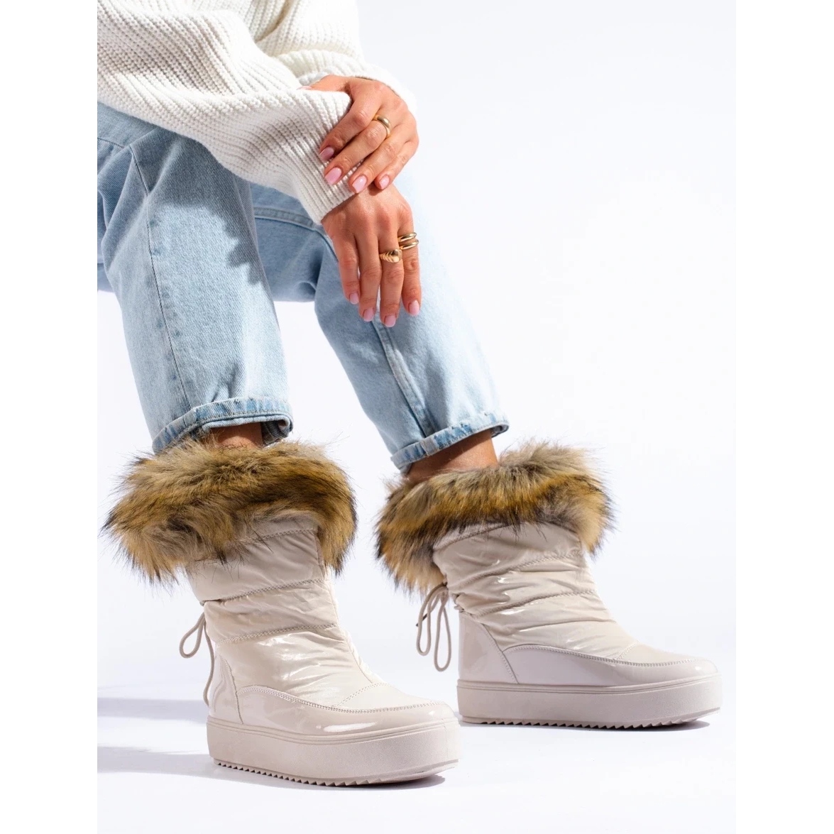Pojedinosti: Shelovet ženske krem čizme za snijeg s krznom zlatni