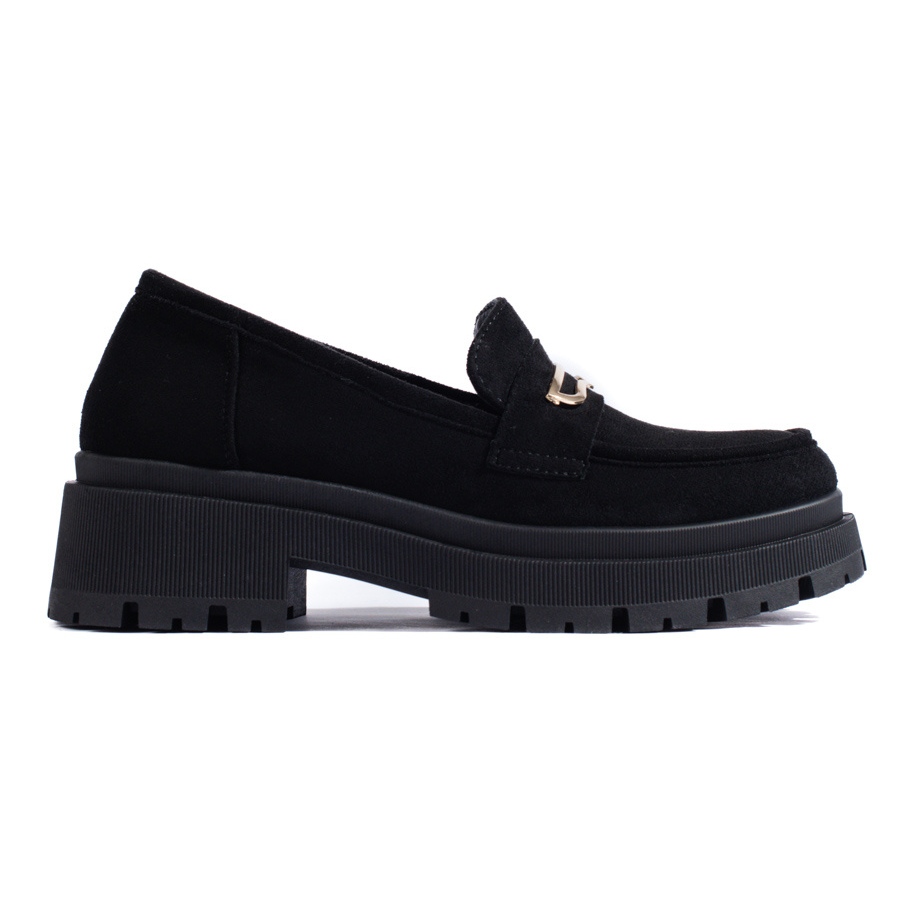 Prilikom odabira ženskih crnih Shelovet mokasina od brušene kože fokusiramo se na bezvremenske boje koje će izgledati sjajno u svakoj garderobi. Vanjski materijal je imitacija antilopa, koji pokriva cijelu površinu cipela, dodajući elegantan karakter. Zauzvrat, kombinacija imitacije kože i prirodne kože iznutra osigurava udobnu upotrebu i izdržljivost. Uložak od ekološke kože je prijatelj stopala, osiguravajući pravilno disanje.