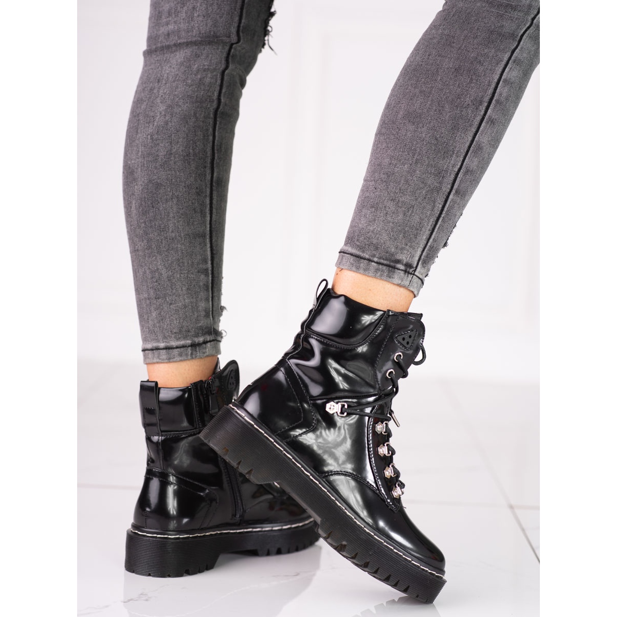 Čizme karakterizira ravna peta visine 3,5 cm i platforma od 2,5 cm, što ih čini ugodnim za dugotrajno nošenje. Dodatna izolacija i tekstilni uložak griju vaša stopala iu najhladnijim danima. Okrugli vrh i čvrsti patentni zatvarač i vezice osiguravaju savršeno pristajanje uz nogu.