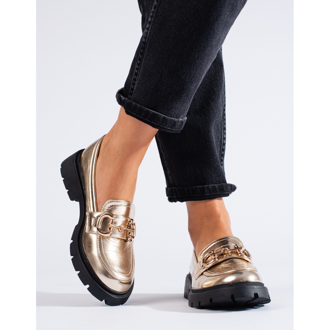 Zlatni natičnici na gustom potplatu Shelovet - stil i udobnost u jednom.
