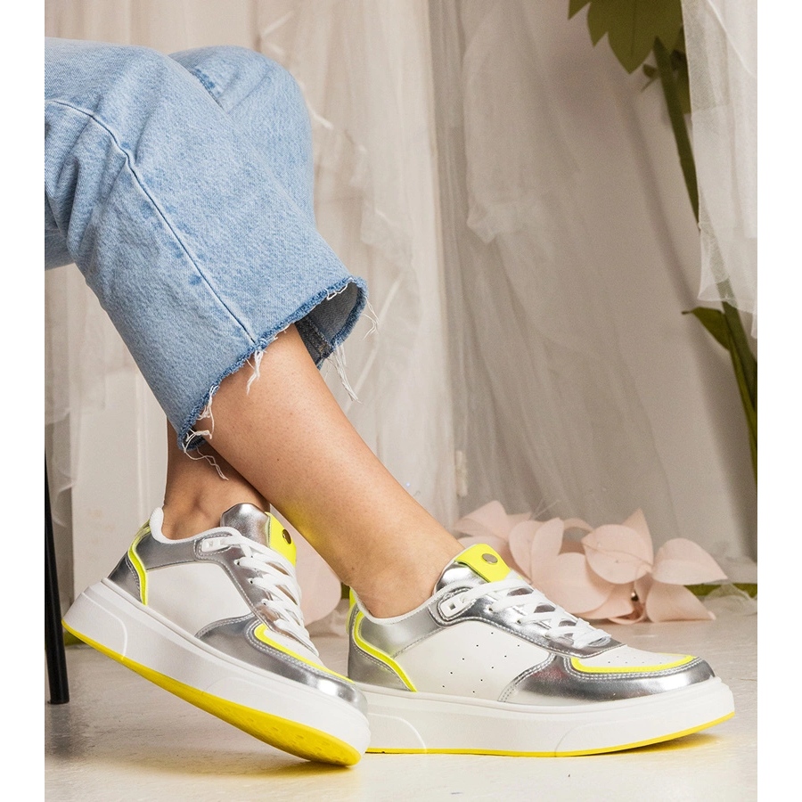 Detalji: Silver ženske tenisice s neonskim dodatkom srebro